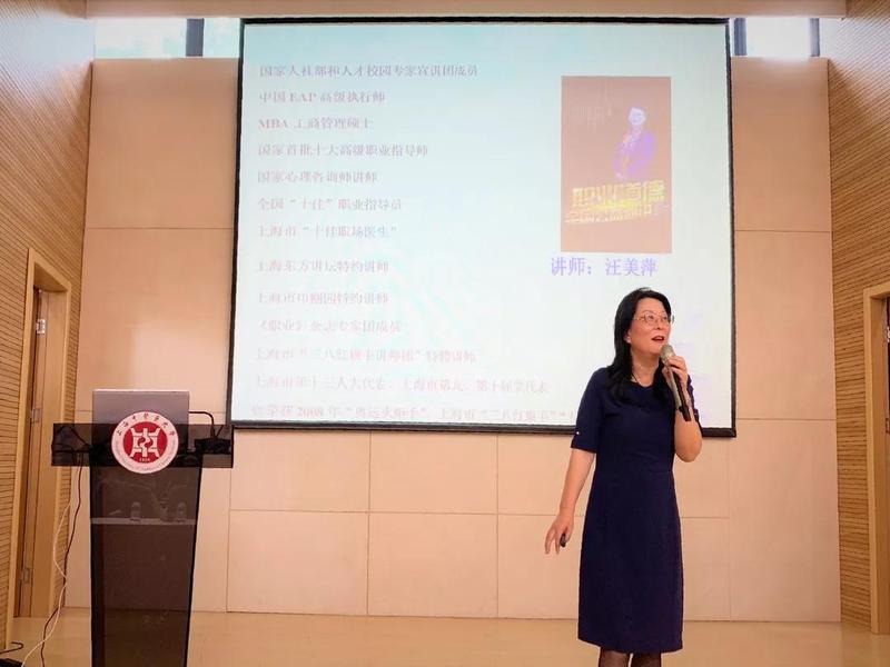 上海市三八红旗手汪美萍首先登场,以《沟通从“心”开始》为主题为全场师生奉献了一场精彩的讲座。