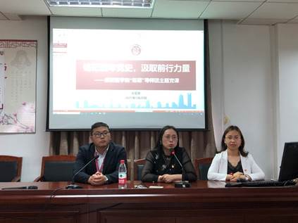 随后,公司办公室褚春晓老师以“传承红色基因,争做时代新人”的主题党课,红色基因是追求,是用于拼搏,自强不息,红色基因也是忘我工作,无私奉献,无怨无悔,作为新一代接班人,我们应该坚定从容,从小事做起,善始善终,善作善成,将红色基因传承下去。随后结合毕业临床实习,通过以往临床实习过程中发生过的案例,介绍了临床实习教学管理环节注意事项,希望在一年的实习中学有所获,争做时代新人。