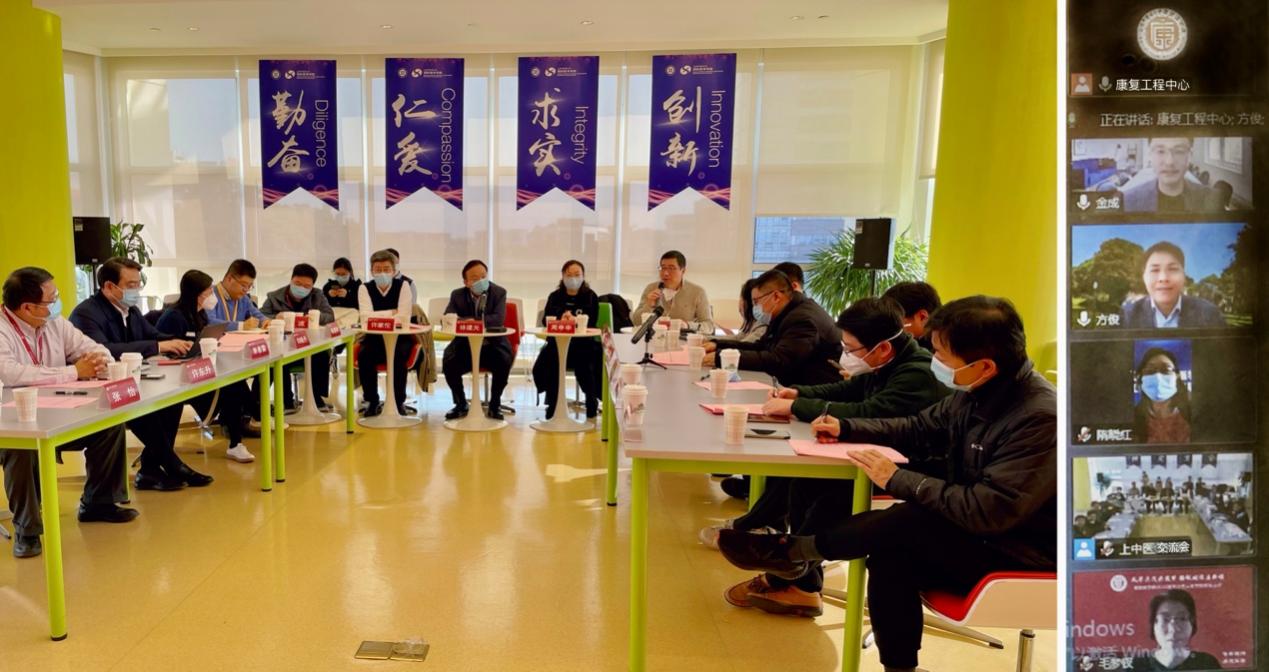 12月15日上午,中医智能康复教育部工程研究中心与上海交通老员工物医学工程公司交流会在公司国际交流合作中心顺利举行。上海市人大教科文卫委员会主任委员、中医智能康复教育部工程研究中心主任、太阳成集团tyc9728原董事长徐建光与工程中心执行主任、太阳成集团tyc9728经理单春雷邀请上海交通老员工物医学工程公司党委副书记周申申,教授钱大宏,副教授王飞虎来访,书记陈江平及部分专家通过线上形式参与本次会议。有关职能处室负责人,康复医公司党政领导班子出席。会议由中心办公室主任、太阳成集团tyc9728副经理许东升主持。