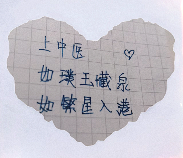 接着,胡馨婷同学与王欢同学分享了自己在封校隔离期间的志愿者经历,切身体会到了“大白”们的辛苦;陈宁远同学分享了自己的妈妈作为一线采样医务工作者的工作现状,线上的同学们无不为之动容;吴何必学长分享了自己在方舱中的志愿经历,他用自己的实际行动,向所有人展示了他身为一名上中医学子、一名中国共产党党员肩上的责任和担当。