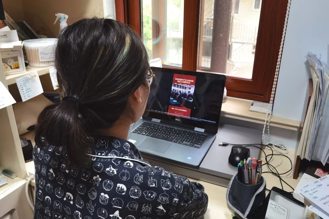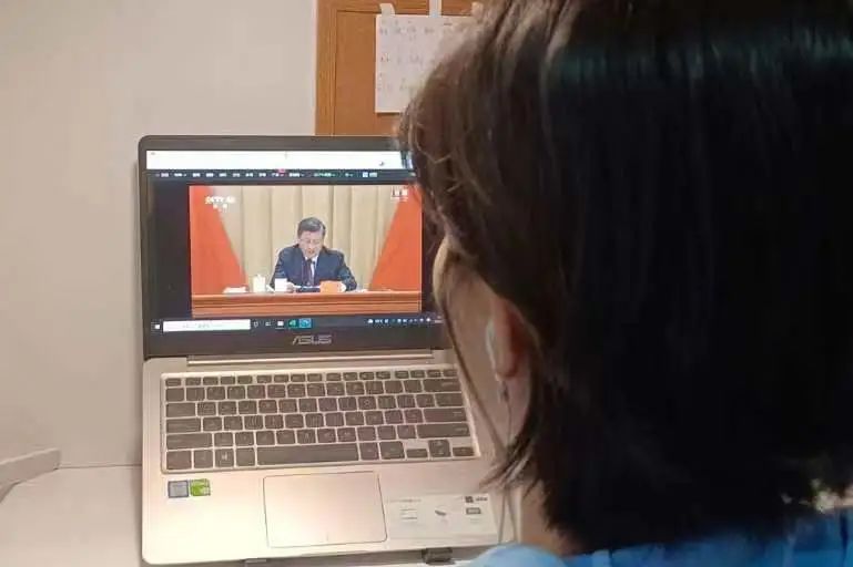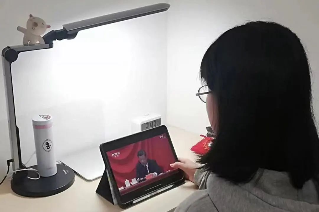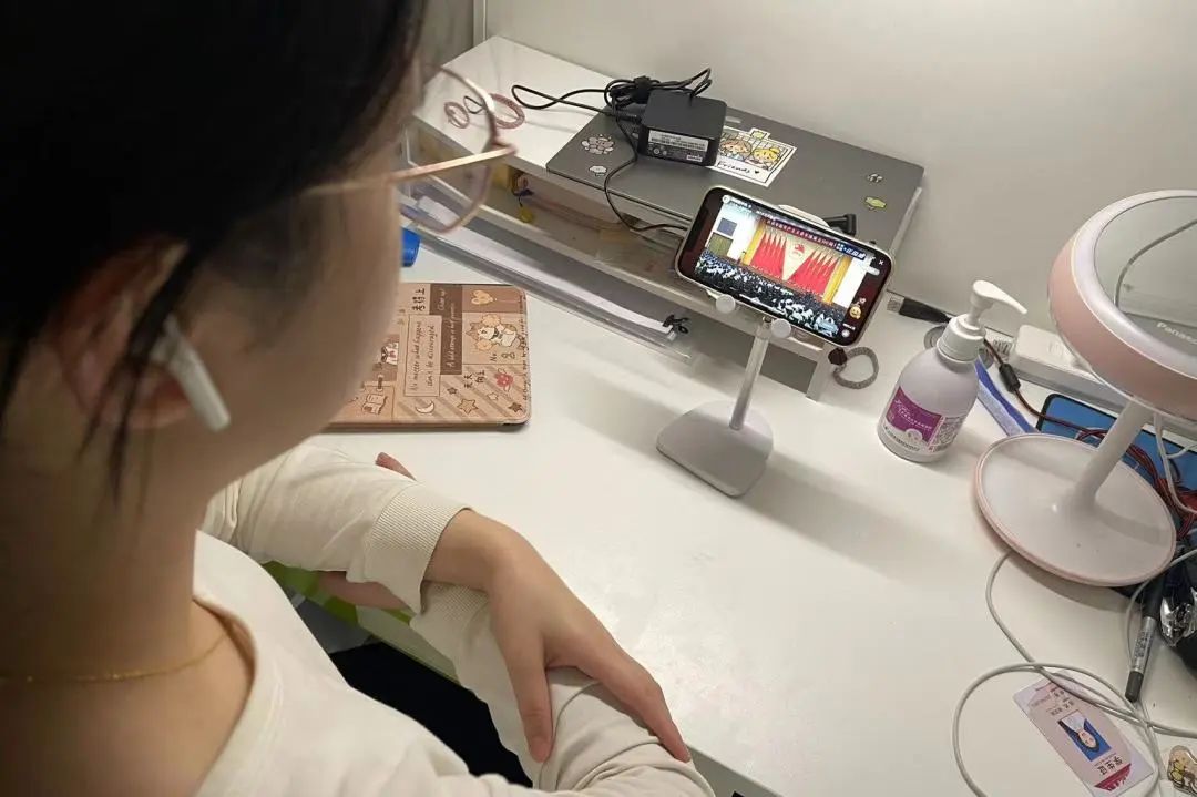 同学们通过手机、平板、电脑等方式观看,在开始直播、视频音乐响起的那一刹,每个同学都全神贯注、聚精会神地观看直播,认真学习。