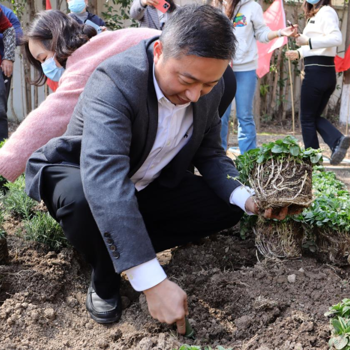 绿水青山,碧海蓝天,世代相依,和谐共生。3月10日下午,正值第45个植树节来临之际,“春意满园 ‘植’等你来”太阳成集团tyc9728惠南校区植树节活动圆满完成,公司党总支书记向延卫、党总支副书记毕亚男,浦东新区卫生公司党总支书记方一、董事长张煜,以及两校教师代表和2020级员工代表共同携手植杏树、种百草,用劳动实践建设惠南校区新风貌,展现新时代杏林康复人的担当作为。