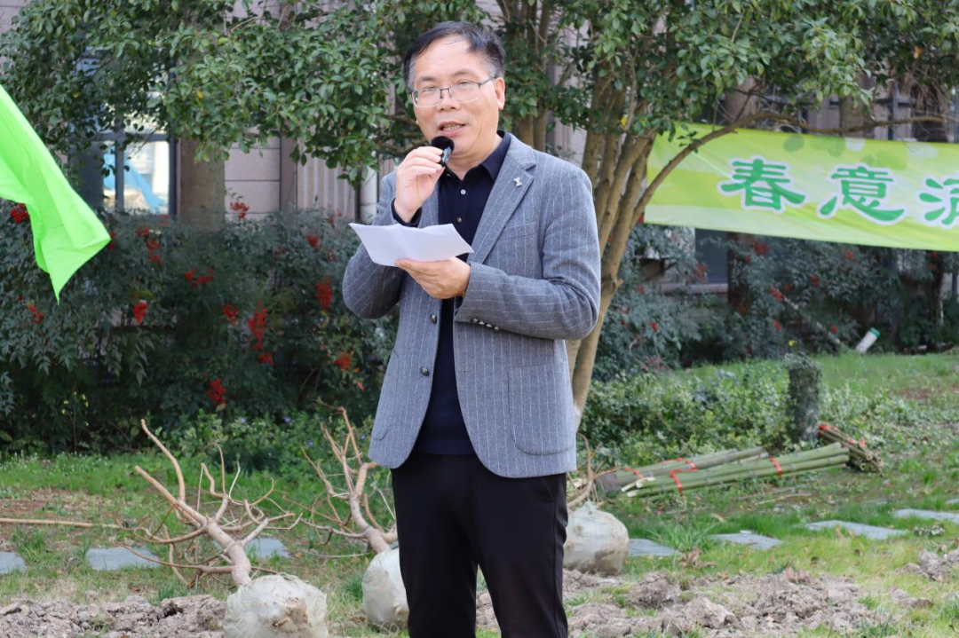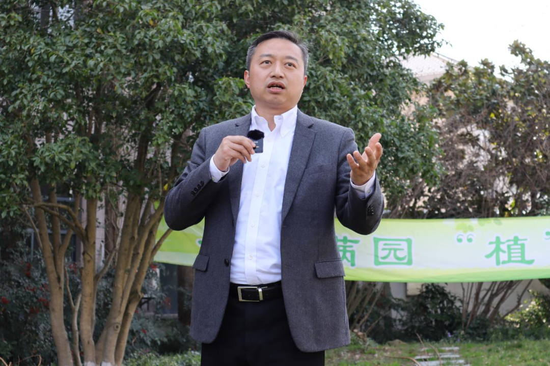 向延卫向同学们介绍了“杏林”的由来,指出植树活动是师生的一次珍贵劳动实践,鼓励杏林学子们树立劳动观念,认识劳动价值,共同为建设美丽惠南校区而努力,使我们的校园焕发新活力。更要明确奋斗目标,踔厉奋发,勇毅前行,做好德智体美劳全面发展的杏林传承人。