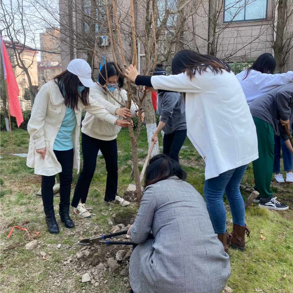 “植杏树,送新绿”,在东校区植树现场,师生们共同种下了十一棵杏树,一心一意,共植杏树,让教学区也化作了成长域,师生们用自己的双手为惠南校区增添了一份春意绿,这一片未来的杏林也将始终陪伴着康复学子们共同成长。