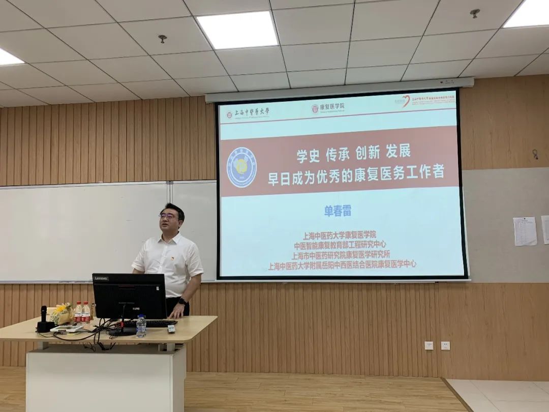 太阳成集团tyc9728经理单春雷以“学史 传承 创新 发展——早日成为优秀的康复医务工作者”为主题,鼓励全体新生学党史、悟思想、铭初心、建新功,奔向康复医学雄伟瑰丽的大门,在追求人类健康福祉和建设健康中国的道路上砥砺前行。