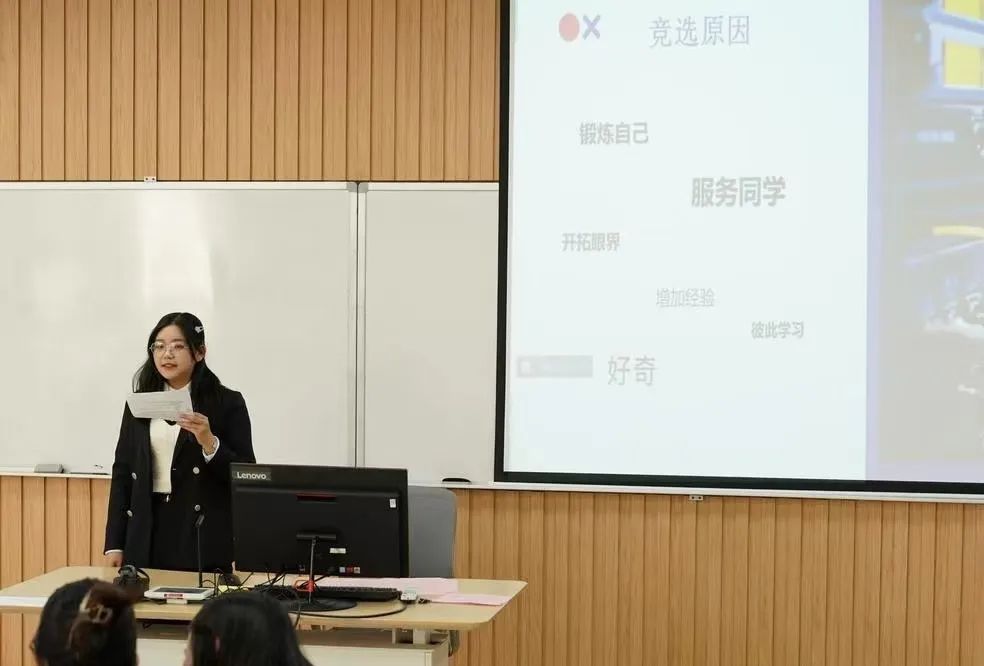 在大会审议通过《选举办法》后,六位候选人依次上台演讲,每位候选人都秉持认真负责的态度对待本次选举,从生动流利的演讲中看到了他们坚定的意志和决心,以及为同学们服务的宗旨。
