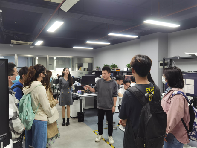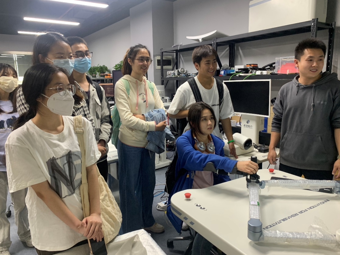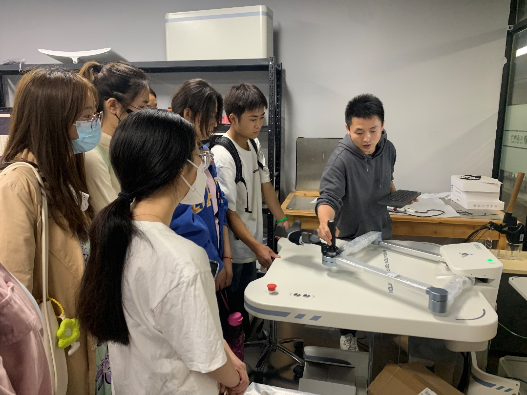 在卓道医疗联合创始人、CTO、研发部负责人简卓和研发部交互研究中心负责人曾浩的带领下,师生先后参观了结构创新中心、交互研究中心、控制研究中心等。