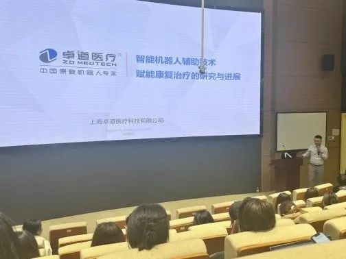 太阳成集团tyc9728导师团院外导师、院级“岐黄育人实践基地”卓道医疗创始人、CEO王道雨为师生作《智能机器人辅助技术在康复治疗中的应用研究与进展》主题讲座。王道雨以自主研发的ArmGuider牵引式上肢康复训练机器人为例,阐述实现了机械臂全面力学交互并配备视听交互情景互动系统的康复机器人模拟再现康复治疗师引导患者进行训练的基本原理,并围绕拥有全球首款实现肩部复合体五自由度设计的机械动力外骨骼结构的Nimbot外骨骼上肢机器人、率先实现髋膝全自由度训练的创新医疗器械SmartSling下肢康复训练机器人,讲解了卓道医疗覆盖上、下肢康复领域完整的康复机器人矩阵。王道雨以直观形式呈现了康复医学工程领域的发展前沿,让同学们领会到康复机器人已经能够提供灵敏、精准的力控方案,构建实时任务导向型情景交互和强大的数据采集、分析、处理系统,这使得以有效治疗和易于管理为优势的康复机器人能够进一步配合乃至嵌入当前康复治疗体系。