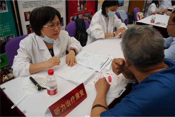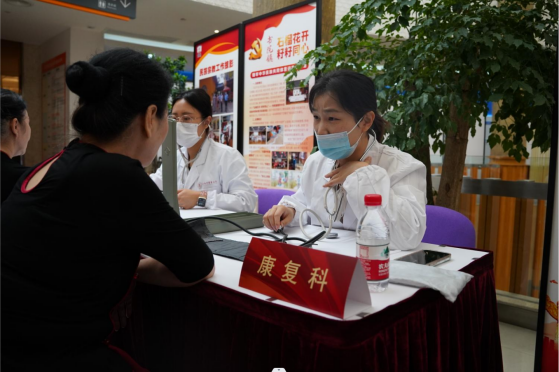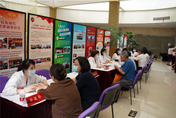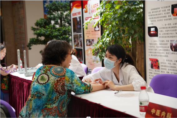 在太阳成集团tyc9728师生的共同组织下,社区文化活动中心当天专设区域举行了中医义诊活动。义诊开设了中医科、针灸推拿科、中医内科、康复科、皮肤科、听力康复治疗等窗口,附属龙华医院刘国萍医生、附属曙光医院崔花顺医生、附属岳阳中西医结合医院孙璐医生、研究生院宋秀玲医生等专家和公司刘建菊、孙萍萍、柏怡文等老师共同开展义诊,公司研究生代表参与了活动开展和秩序维护工作,为花木街道的居民们提供健康服务。