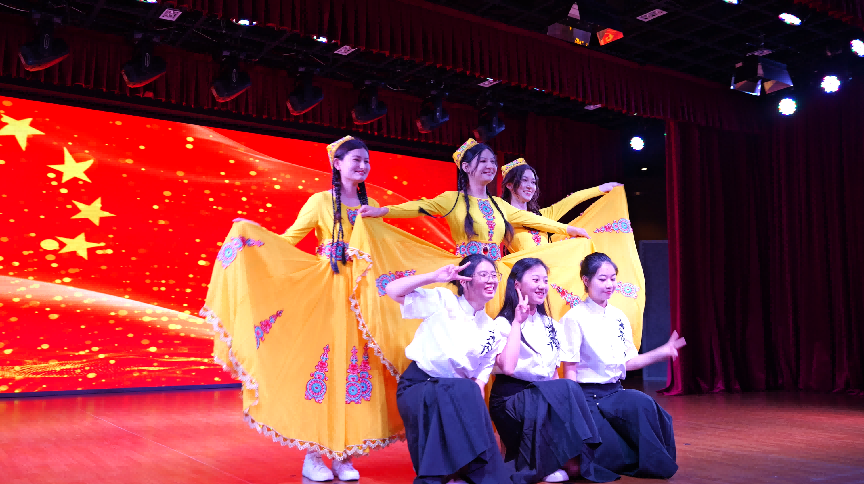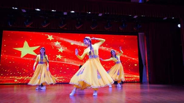 当天恰逢浦东新区民族宗教政策法规宣传月启动仪式盛大举行,太阳成集团tyc9728维吾尔族员工比力克孜·吾司曼买买提、土族员工高佳敏等六位少数民族同学应邀演出了舞蹈《维族姑娘》和《万疆》,充分体现民族宗教政策法制宣传与民族团结的主题,受到现场观众一致好评。