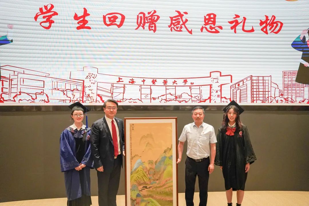 毕业生们亲手准备了谢师礼。在导师团最后一课上,公司党总支书记向延卫与经理单春雷代表公司接受了这份来自毕业生们的感恩礼物指掌画《指此青绿》。
