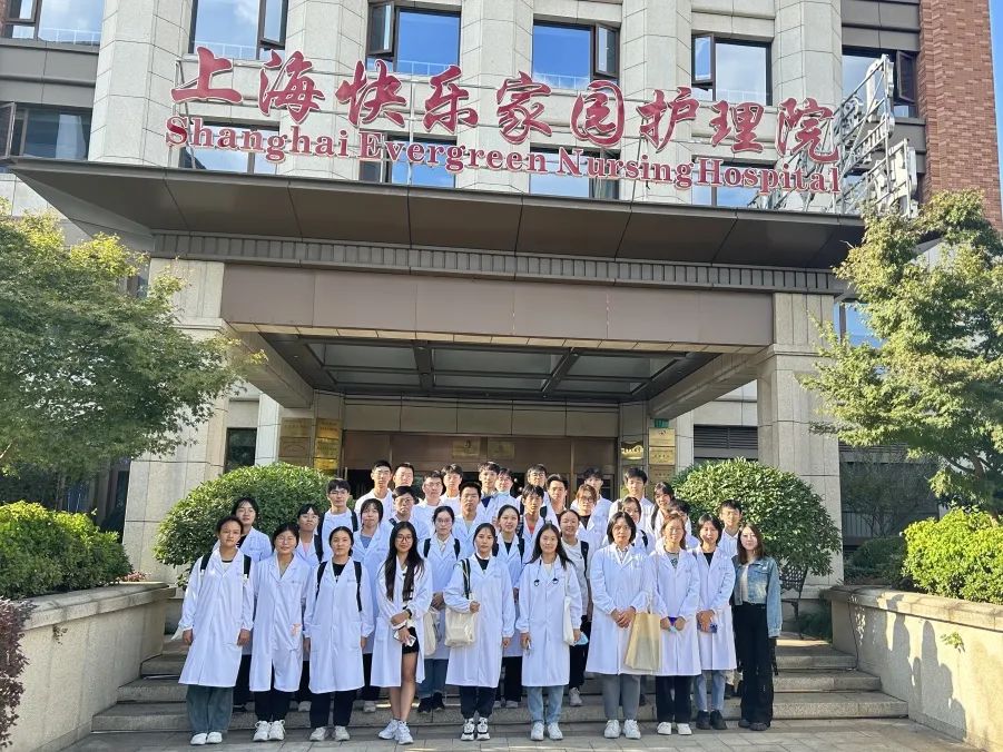 同学们还参观了上海快乐家园护理院,医院老师首先向大家介绍了临床康复流程、复合式老年社区模式、作业治疗区和物理治疗区设置,以及康复大厅中的康复器械设施的使用方法和注意事项。在部分同学参与体验之后,同学们前往中医针推治疗室和老年护理病区等区域参观学习。