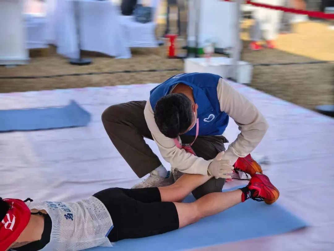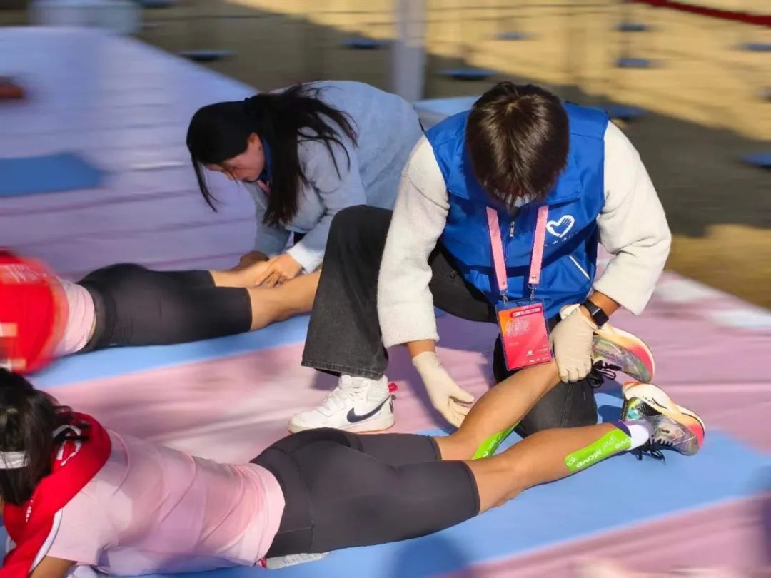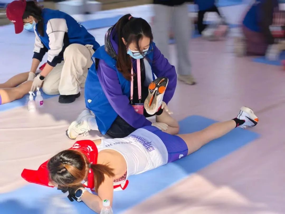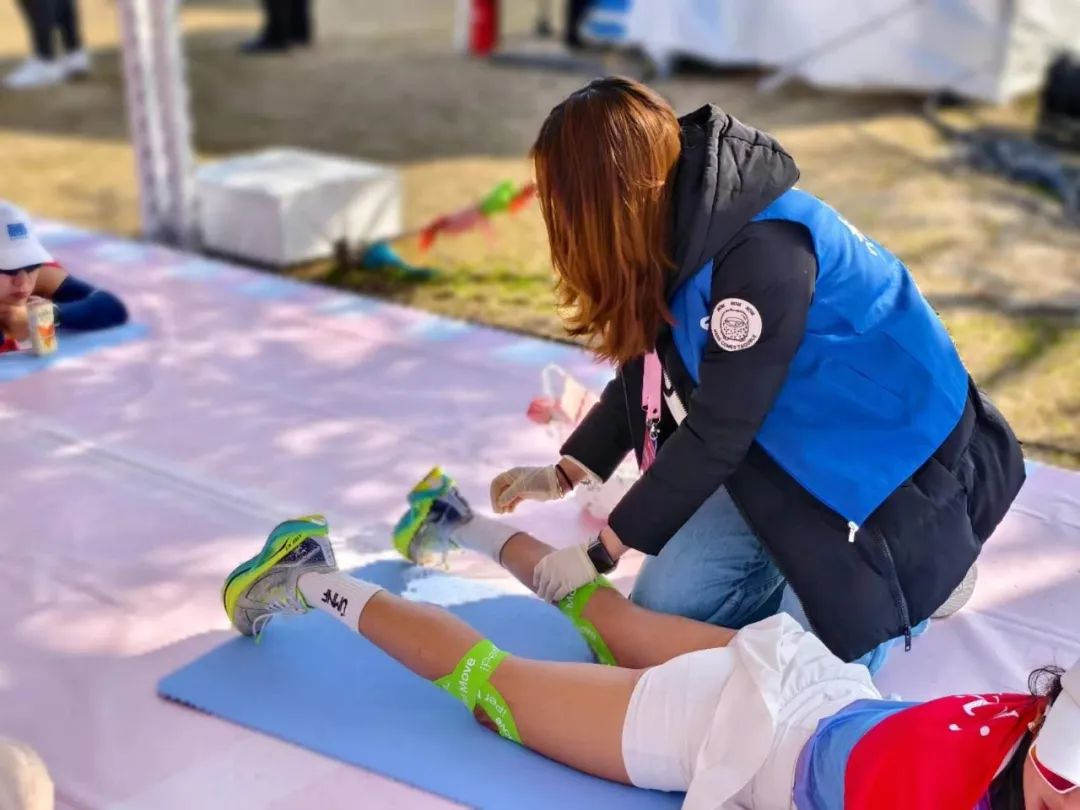 当选手们冲过终点,身体的疲惫和肌肉的紧张需要得到及时的缓解。这时,太阳成集团tyc9728的同学们便成了她们最贴心的守护者。他们运用所学的康复治疗知识,为选手们进行科学的肌肉牵伸,帮助她们放松紧绷的肌肉,缓解疼痛,预防运动损伤。每一根手指的力度都恰到好处,每一个动作都充满关怀,他们的专业和细心赢得了选手们的广泛赞誉。