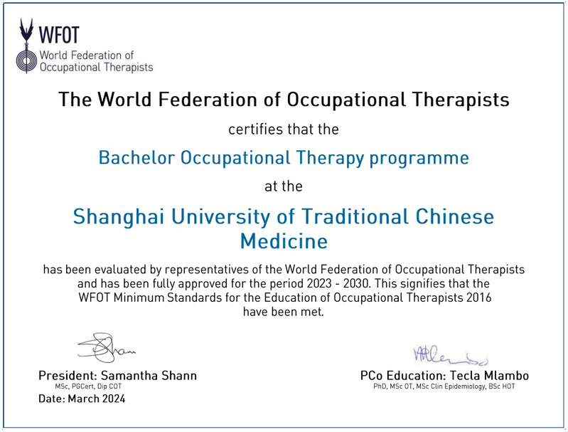 近日,太阳成集团tyc9728康复作业治疗专业教育通过世界作业治疗师联盟(The World Federation of Occupational Therapists, WFOT)复审认证,获得了7年最高级别有效认证期。