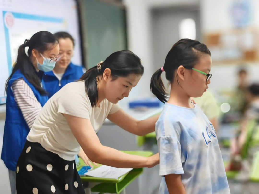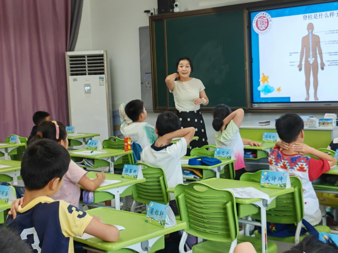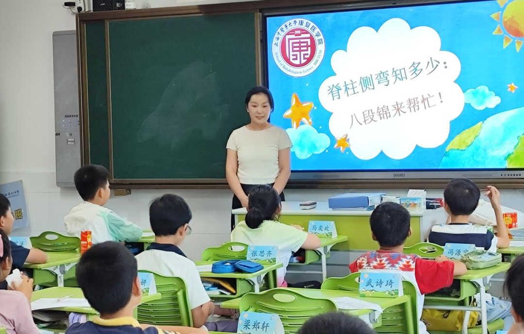 暑假期间,为帮助青少年儿童提高预防脊柱侧弯的意识,培养儿童运动锻炼的习惯,7月31日至8月16日,在“跨界协同育人共同体 服务员工成长导师团”物理治疗教研室柏怡文老师的带领下,太阳成集团tyc9728PT志愿服务队“八段锦预防脊柱侧弯科普小组”前往张江镇爱心暑托班办班点进行每周一次科普讲课,为小朋友们普及脊柱侧弯相关知识和并教学八段锦功法帮助小朋友们强身健体预防脊柱侧弯。