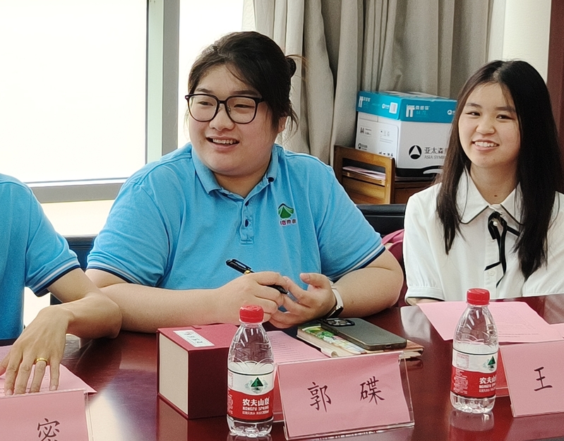 受助员工代表王欢、阿丽马·吐尔逊、乃比赛·艾尼瓦尔、迪力娜扎·艾斯喀向老师们汇报了个人在成长发展和学业生活中取得进步,对公司、大初公益基金会和老师们长期以来的关心关爱表达最诚挚的感谢,并表示将努力学习、早日成才,将国家和社会赋予的爱传递下去。