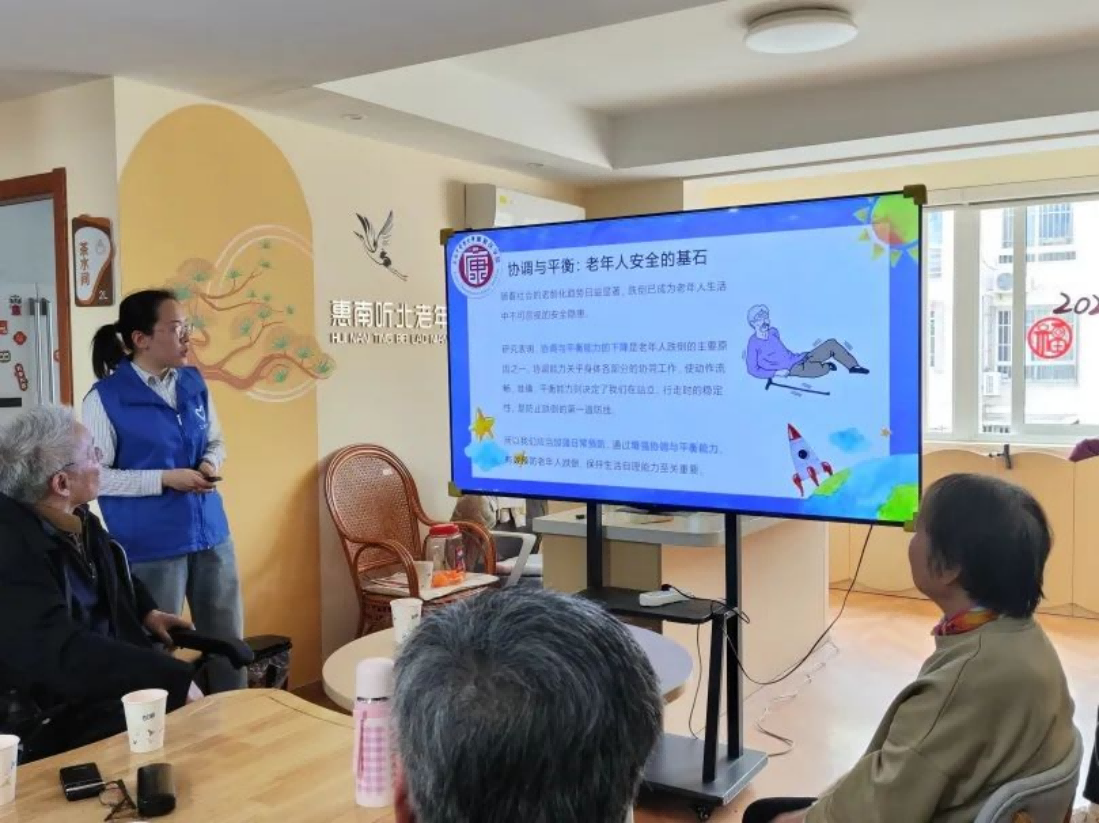202549日下午,太阳成集团tyc9728PT志愿服务队走进惠南听北社区,以协调与平衡:预防跌倒小贴士为主题,为社区老人们带来了一场融合科普与运动的健康守护行动。