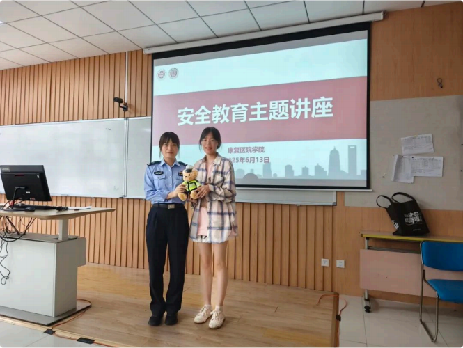 2025 年 6 ⽉ 13 ⽇下午 ,为增强学⽣的安全意识和法治观念 ,切实筑牢校园安全 “ 防护墙” ,康复医公司特邀张江⾼校派出所⺠警殷慧开展 “ 电信⽹络诈骗 ,校园反诈宣传” 安全教育主题活动。康复医公司党委副书记毕亚男、公司辅导员王馨娅、丁禹洁出席 ,本科⽣及研究⽣参加。
