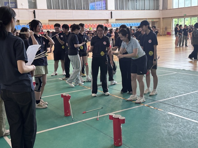 本次嘉年华精心设计了多项集趣味性、竞技性和文化性于一体的运动项目。“蛟龙出海”考验师生默契,统一向前的步伐是“同心同行”的生动写照;“心肺交响”在律动中点燃活力,跃动的身影展现了健康生活的风采;“过河拆桥”需要策略与协作,每一次智慧的传递都是团队精神的精彩演绎;而“壶纳千祥”则带来一缕古风雅韵,举手投足间尽显传统文化的魅力与智慧。师生在欢笑中挥洒汗水,在协作中增进理解,通过寓教于乐的形式,进一步拉近了师生间的心理距离,增强了团队凝聚力。