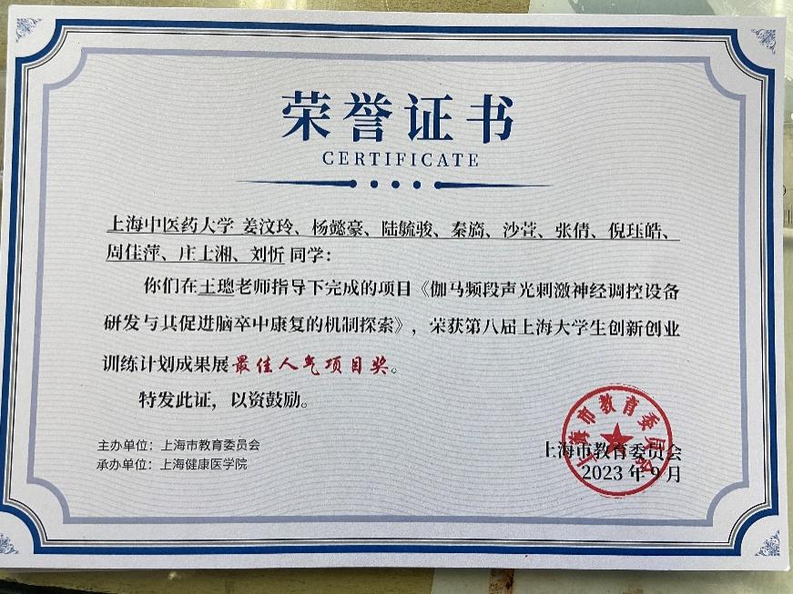 7.第八届上海老员工创新创业训练计划成果展最佳人气项目奖